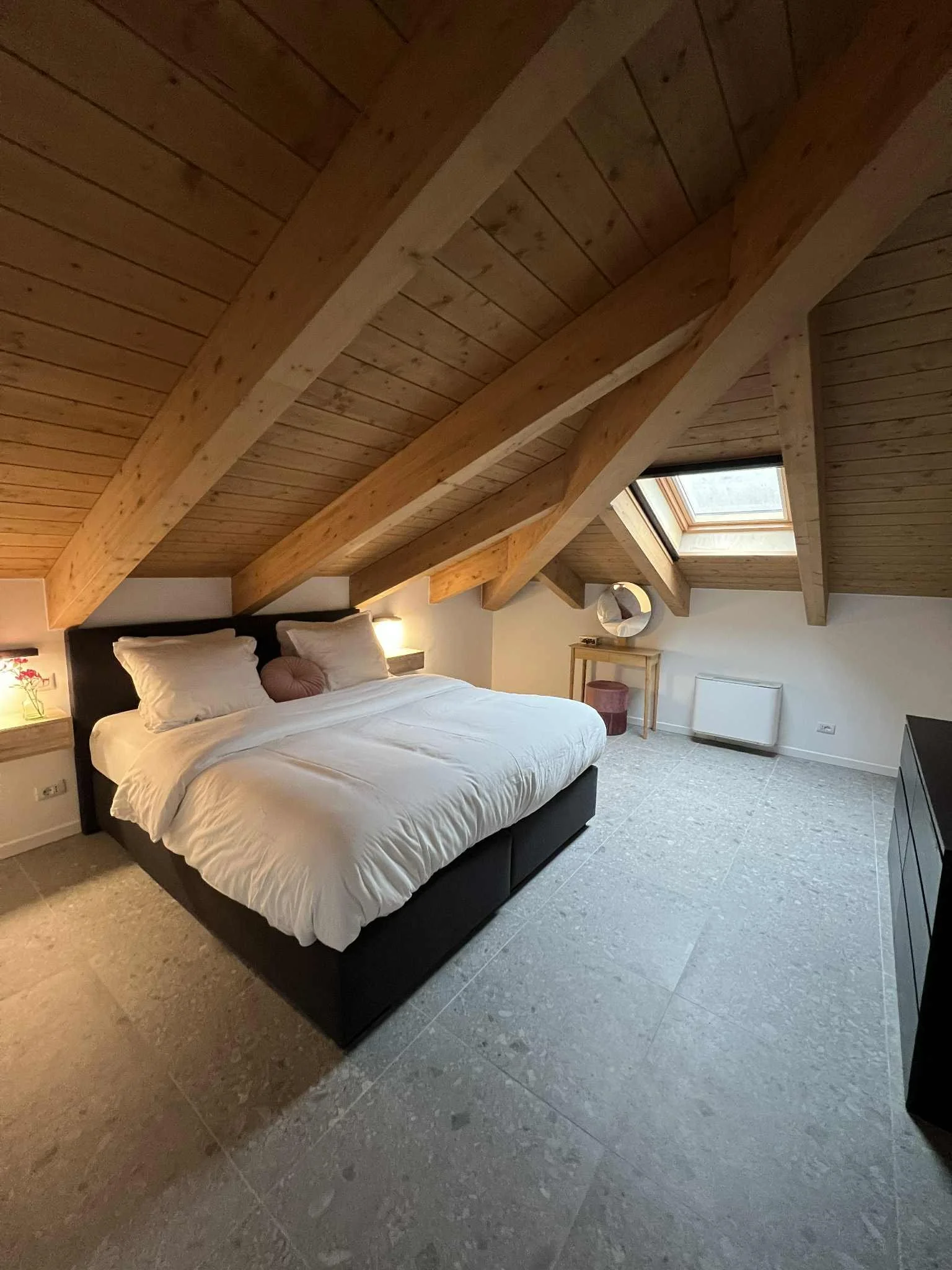 100 sqm (net) loft apartment. A spacious and bright apartment with air conditioning, two bedrooms, and one bathroom. The apartment features an open-plan kitchen with a dishwasher, coffee machine, refrigerator, gas stove, and kettle, as well as a welcoming living and dining area with plenty of space for both relaxation and meals. Price: €350 per night